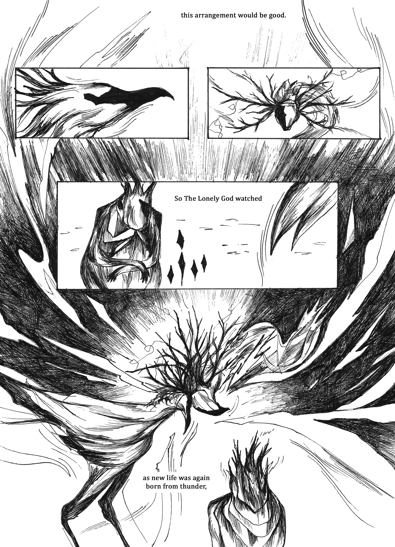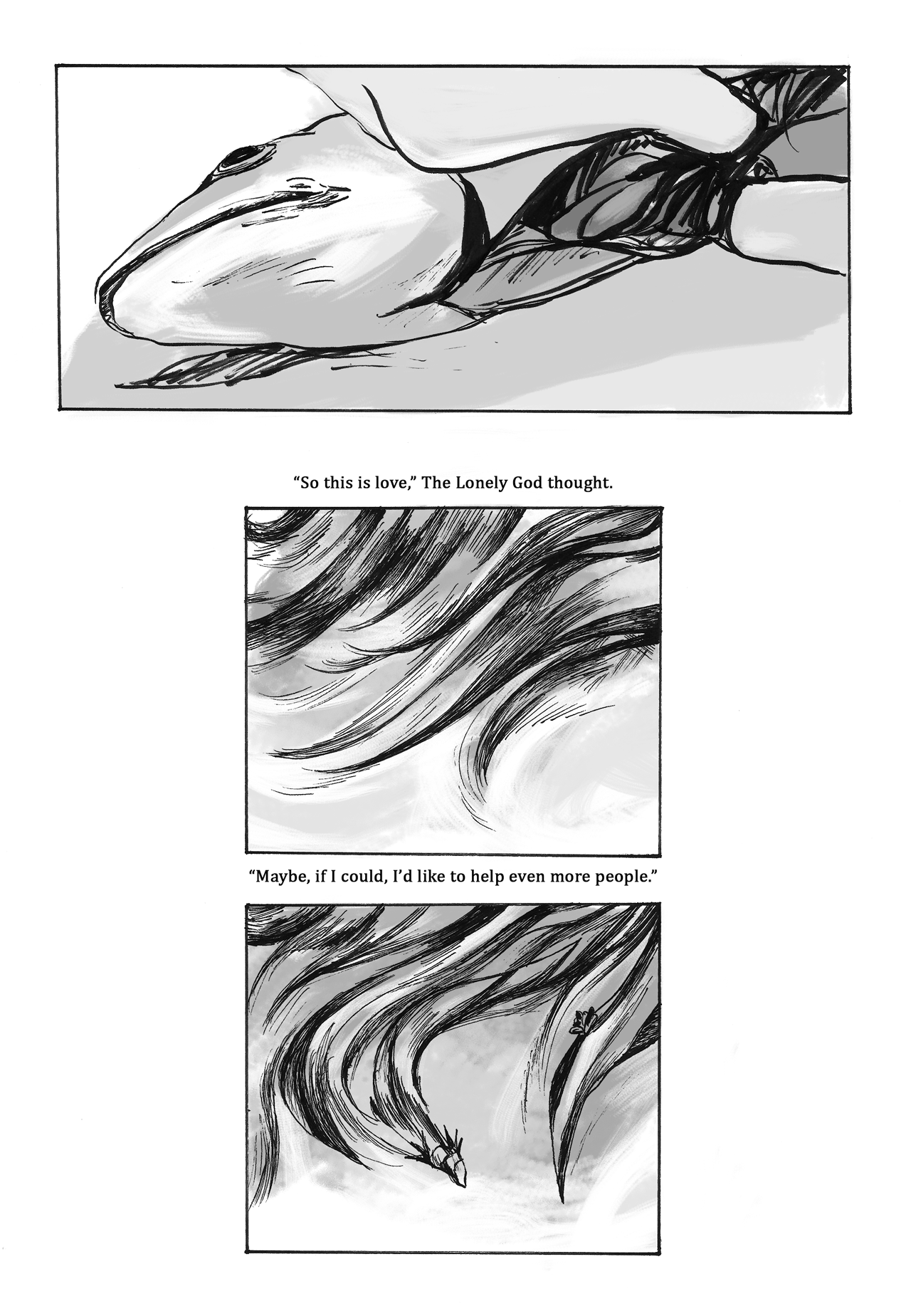 As I upload this to what will hopefully be the comic’s forever home, I’m noticing the deity’s creative burnout, ennui, and grief-spurred inspiration in a much more relatable light, having left home to become an expat for nearly a decade.